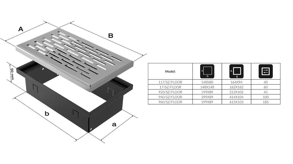 Grille de ventilation FLOOR 9×60 Inox – Description produit